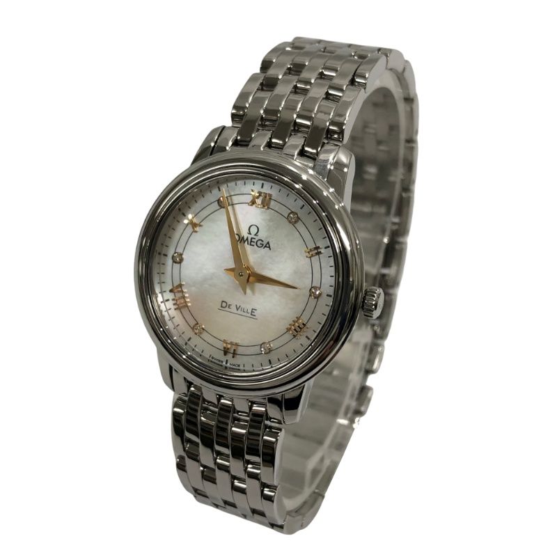 OMEGA オメガ 腕時計 デビル プレステージ 6Pダイヤ 424.10.27.60.55.001 クオーツ シェル文字盤 専門業者磨き済 22509K400 GLOBALQUALITYIMPORTS_COM
