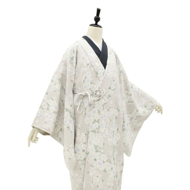 新古品 へちま衿 コート 袷 ペールグレー地 地紋 市松 菊 桜 花柄 草花 染め柄 エレガント かわいい お洒落 セミフォーマル カジュアル 新古品 仕立て上がり 身丈114 裄丈71 Lサイズ みやがわ sb16316の検索結果