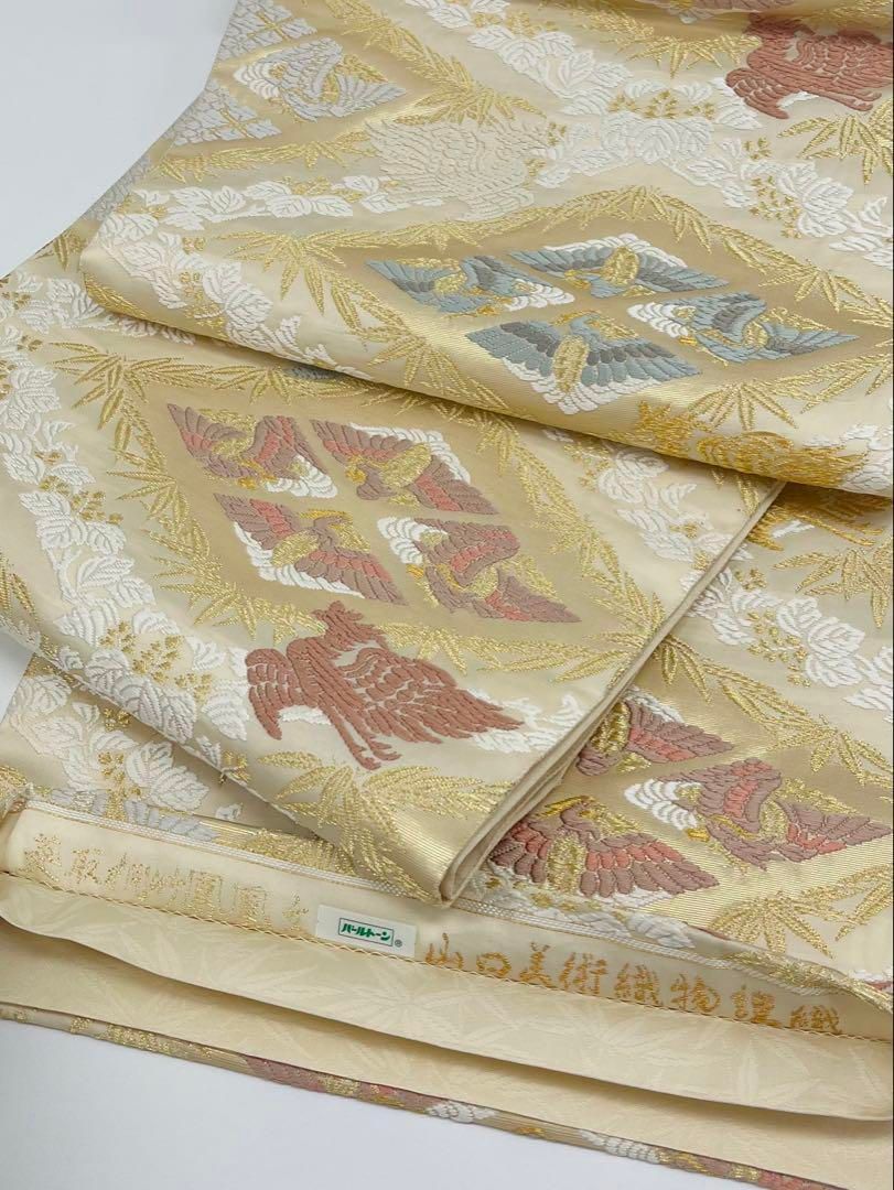 山口美術織物 有職菱取桐竹鳳凰文 唐織 袋帯 金糸 正絹 六通 桐 GLOBALQUALITYIMPORTS_COM