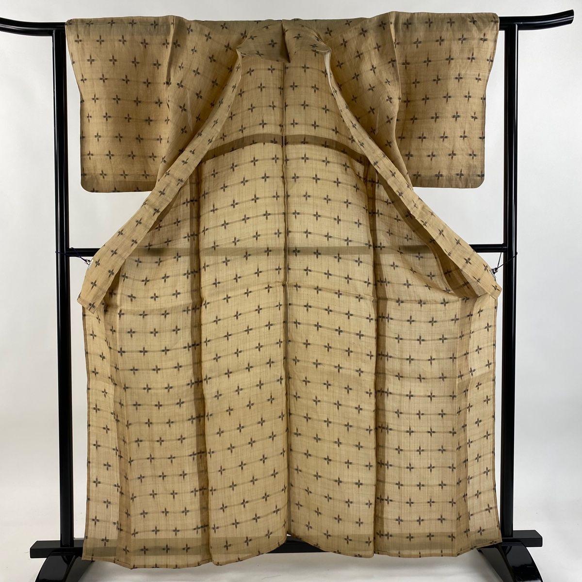 紬 身丈162cm 裄丈61cm S 薄物 十字絣 薄茶色 芭蕉の検索結果