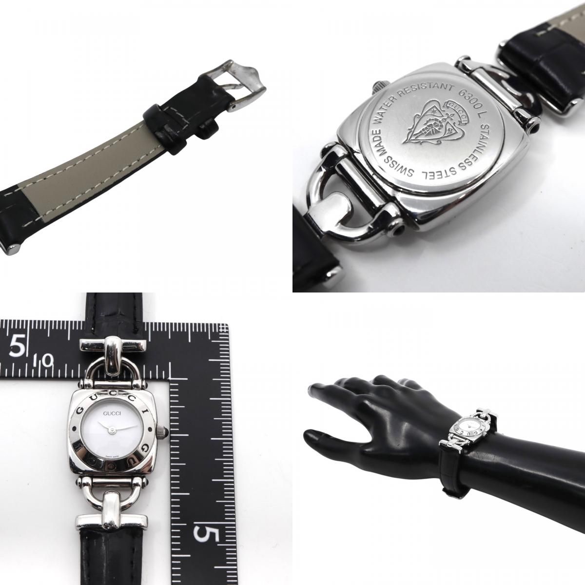 電池交換済 ベルト 社外品 グッチ GUCCI 6300L レディース腕時計 クオーツ スクエアケース シルバー ホワイト文字盤 ブラックレザーベルト ホースビットデザイン クラシック エレガント ドレスウォッチ SWISS MADE G2の検索結果