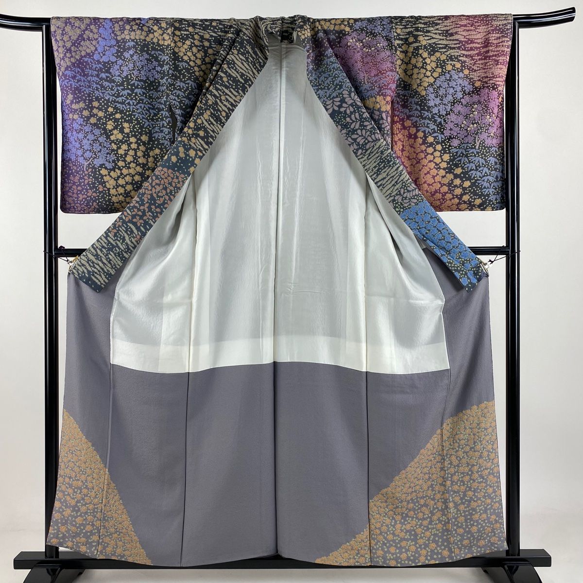 訪問着 身丈157cm 裄丈64.5cm M 袷 滝泰 落款 桜 梅 金通し 絞り 黒灰 正絹の検索結果