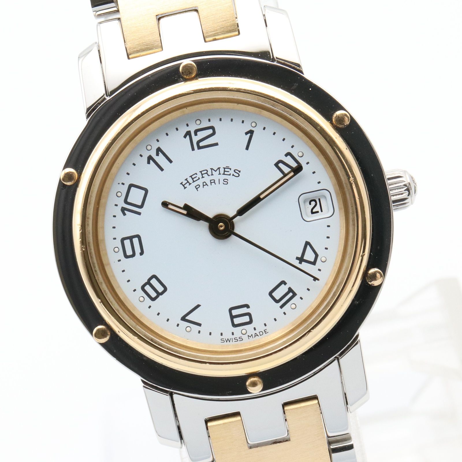 エルメス HERMES 腕時計 クリッパー CL4.220 ホワイト GP ゴールドメッキ ステンレススチール クリッパー レディース Used A GLOBALQUALITYIMPORTS_COM