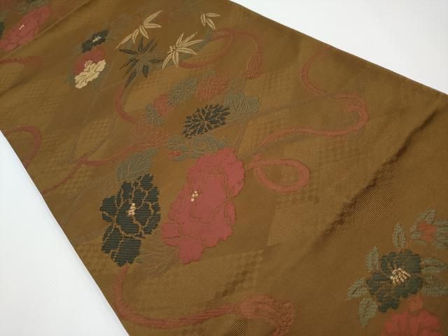 平和屋着物 上 西陣 川島織物 洗える最 着物 英 はなぶさ謹製 六通柄京袋帯 黒茶色地 たとう紙付き CYAA3410s5 GLOBALQUALITYIMPORTS_COM