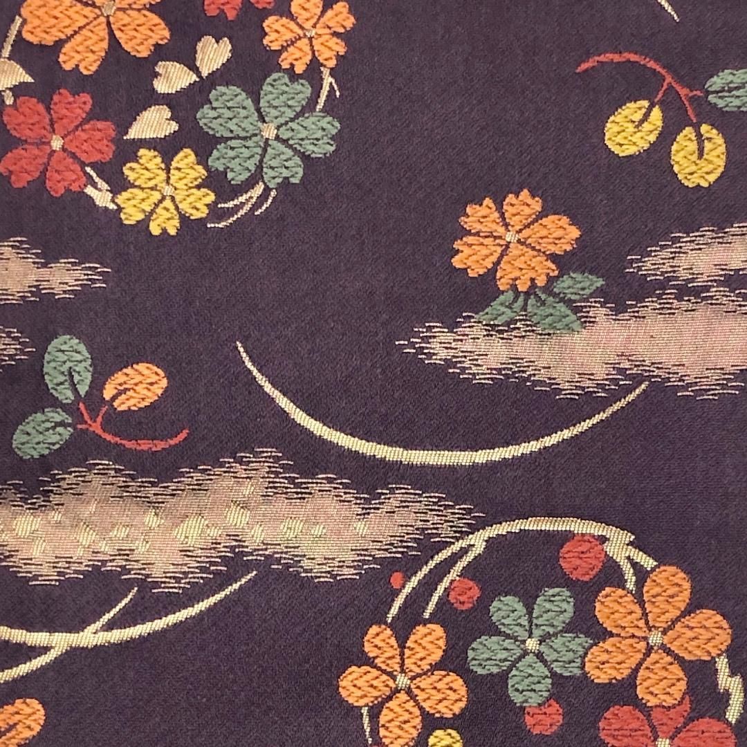 半幅帯 花模様 芝に萩 紫色 金糸 D-2113 GLOBALQUALITYIMPORTS_COM