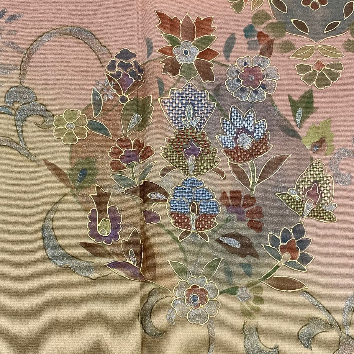 訪問着 身丈152.5cm 裄丈62cm S 袷 落款 草花 花唐草 刺繍 金糸 ピンク 正絹 秀品の検索結果