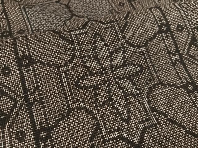 紬 身丈154.5cm 裄丈62.5cm S 袷 幾何学模様 焦茶色 正絹 秀品