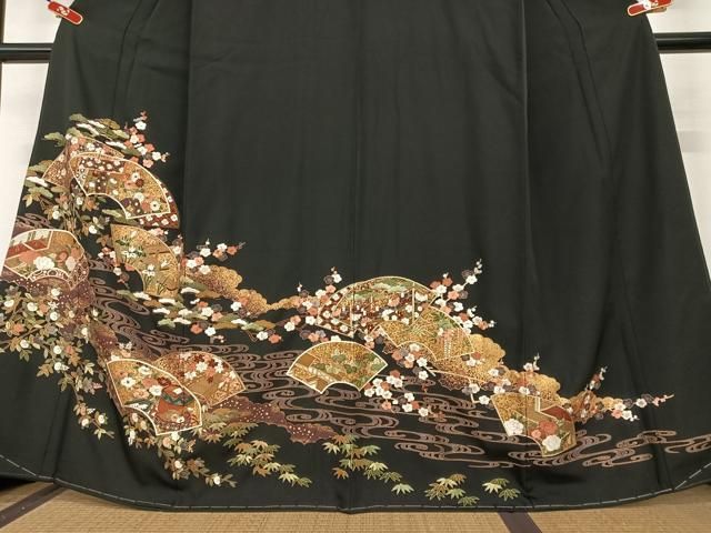 平和屋着物 豪華黒留袖 作家物 駒刺繍 打ち出の小槌 扇面吉祥花宝尽くし 金彩 正絹 AABC3347ph