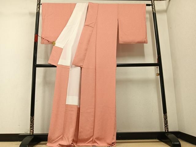 平和屋着物 上質な色無地 貝合わせ花地紋 濃浅蘇芳色 正絹 DAAY1528ps