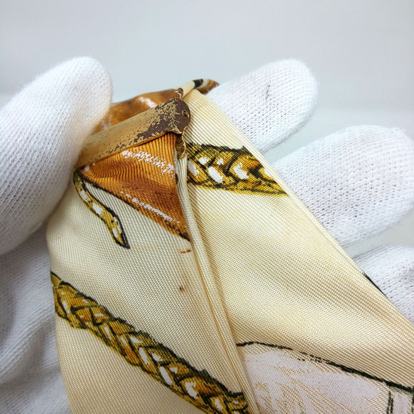 970B-03 HERMES エルメス シルク サスペンダー レザー 総柄 イエロー系 ゴールド金具 ブランド 服飾雑貨