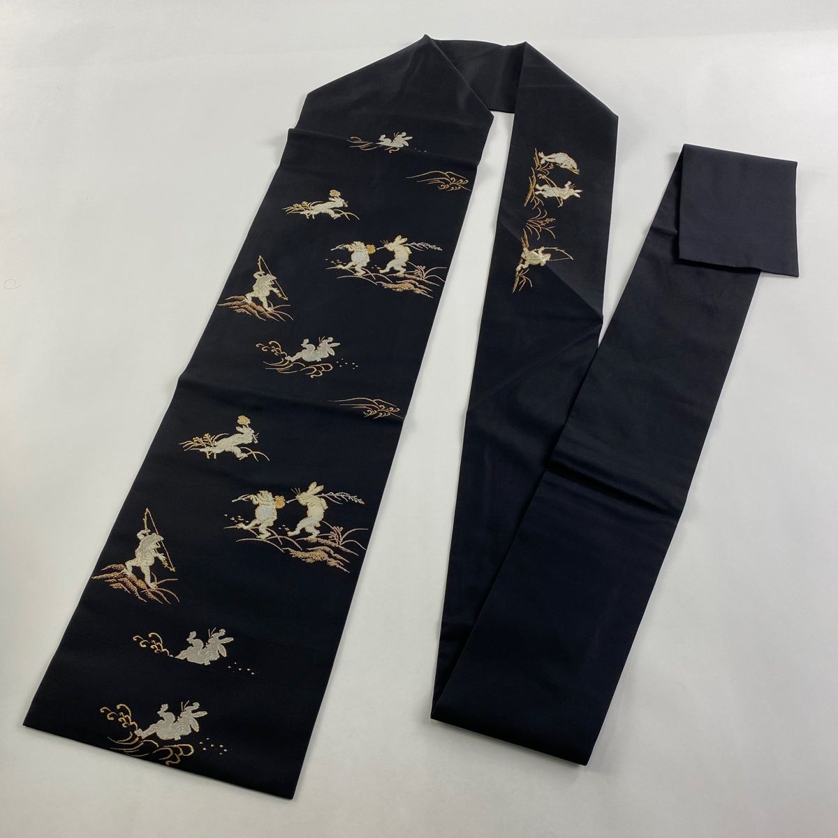名古屋帯 鳥獣戯画 うさぎ 金銀糸 箔 黒 正絹の検索結果