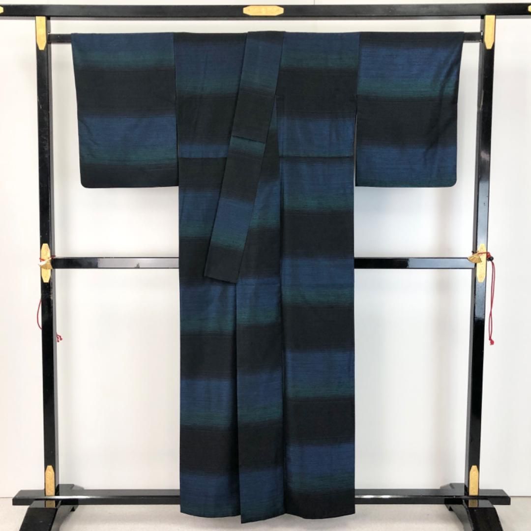 紬着物 横段模様 グラデーション 黒色 K-5268の検索結果
