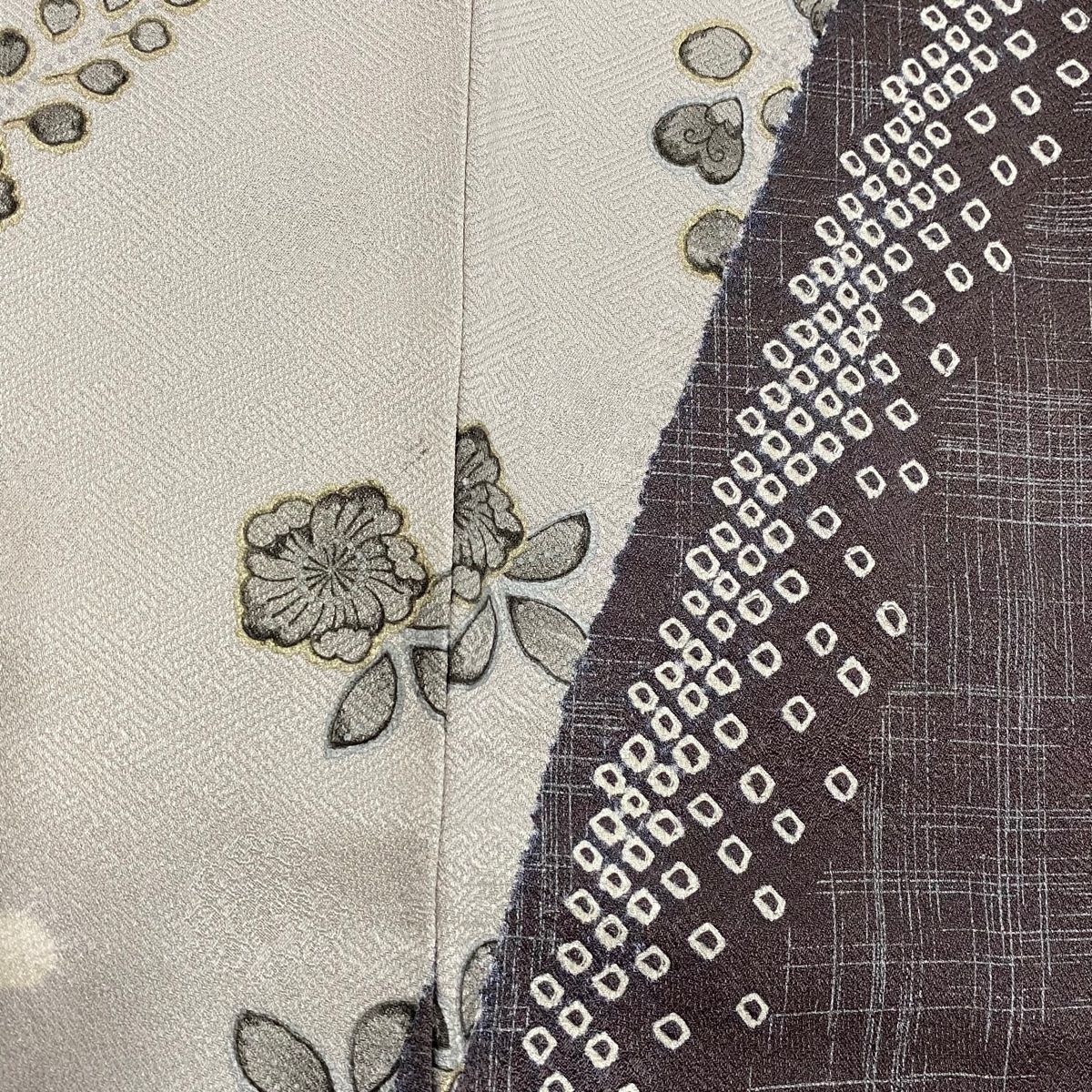 付下げ 身丈157cm 裄丈66.5cm M 袷 草花 ぼかし 茶紫 正絹 秀品