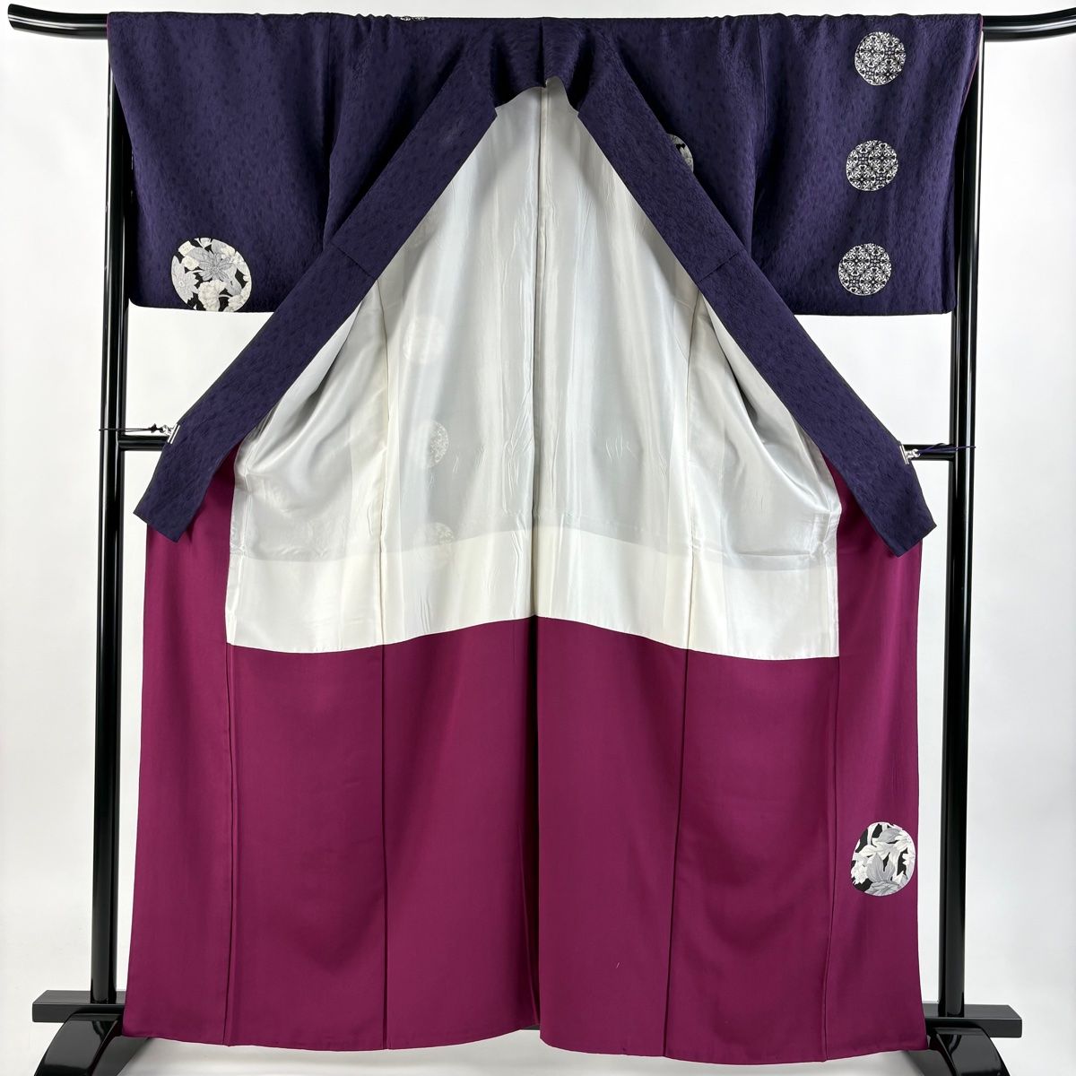 付下げ 身丈163cm 裄丈67cm M 袷 草花 丸文 濃紫 正絹の検索結果