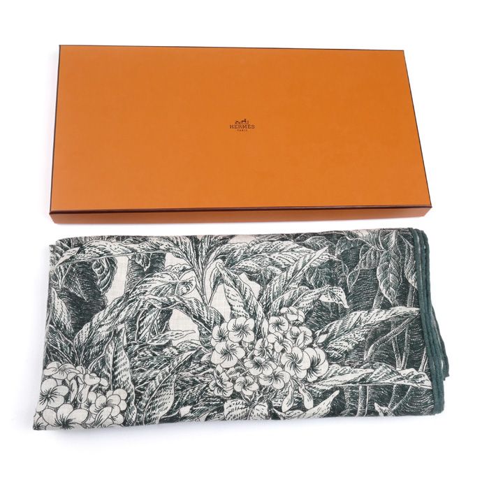 HERMES エルメス カレジュアン BOTANICO DI PALERMO パレルモの植物園にて ストール グリーン ヴェール ロデン ナチュラル アンクル H244121S 05 レディース GLOBALQUALITYIMPORTS_COM