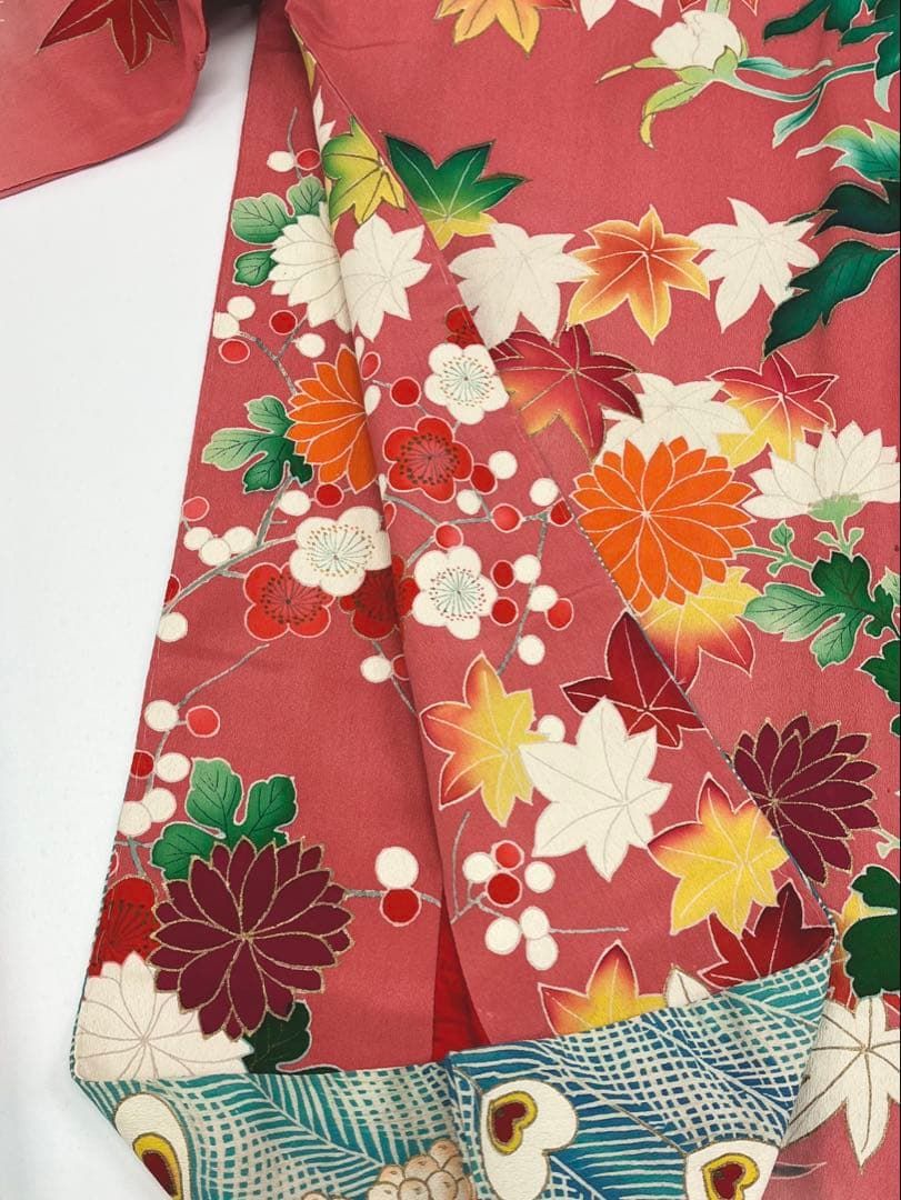 アンティーク 豪華 振袖 五つ紋 友禅 金彩 孔雀 鳥 梅 南天 正絹 紅絹の検索結果
