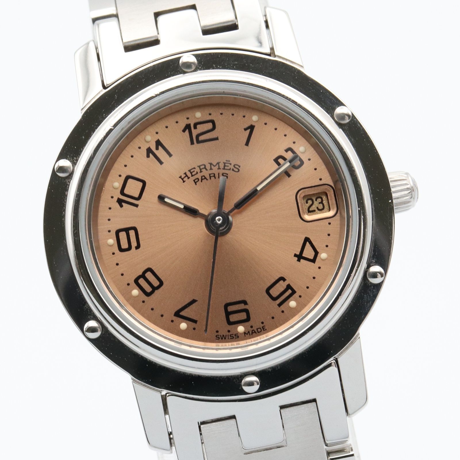 エルメス HERMES 腕時計 クリッパー CL4.210 ピンク ステンレススチール クリッパー レディース Used A GLOBALQUALITYIMPORTS_COM
