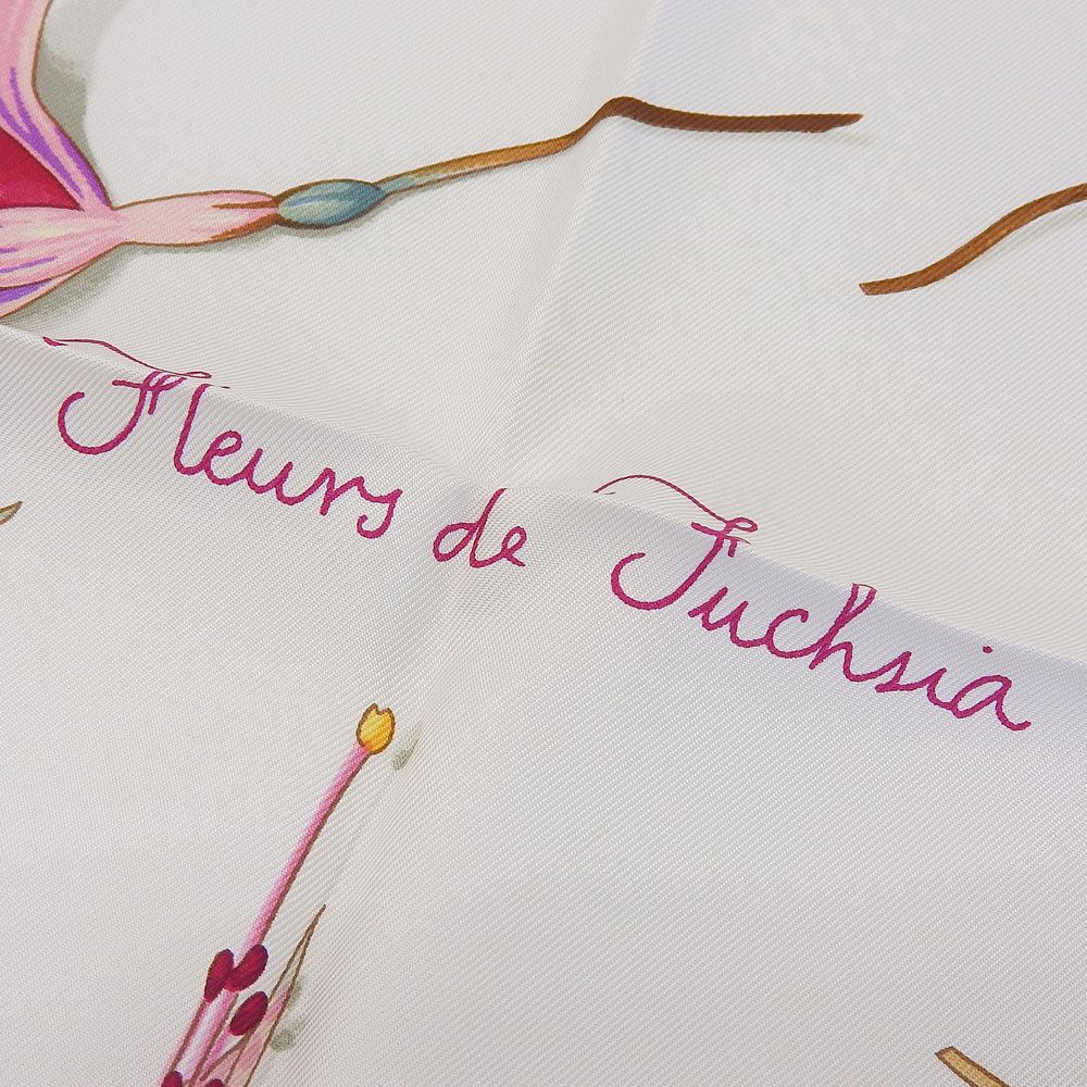 超 エルメス HERMES 2006年商品 Fleurs De Fuchsia フクシャの花 カレ90 シルク スカーフ ストール ホワイト 超 レディー GLOBALQUALITYIMPORTS_COM