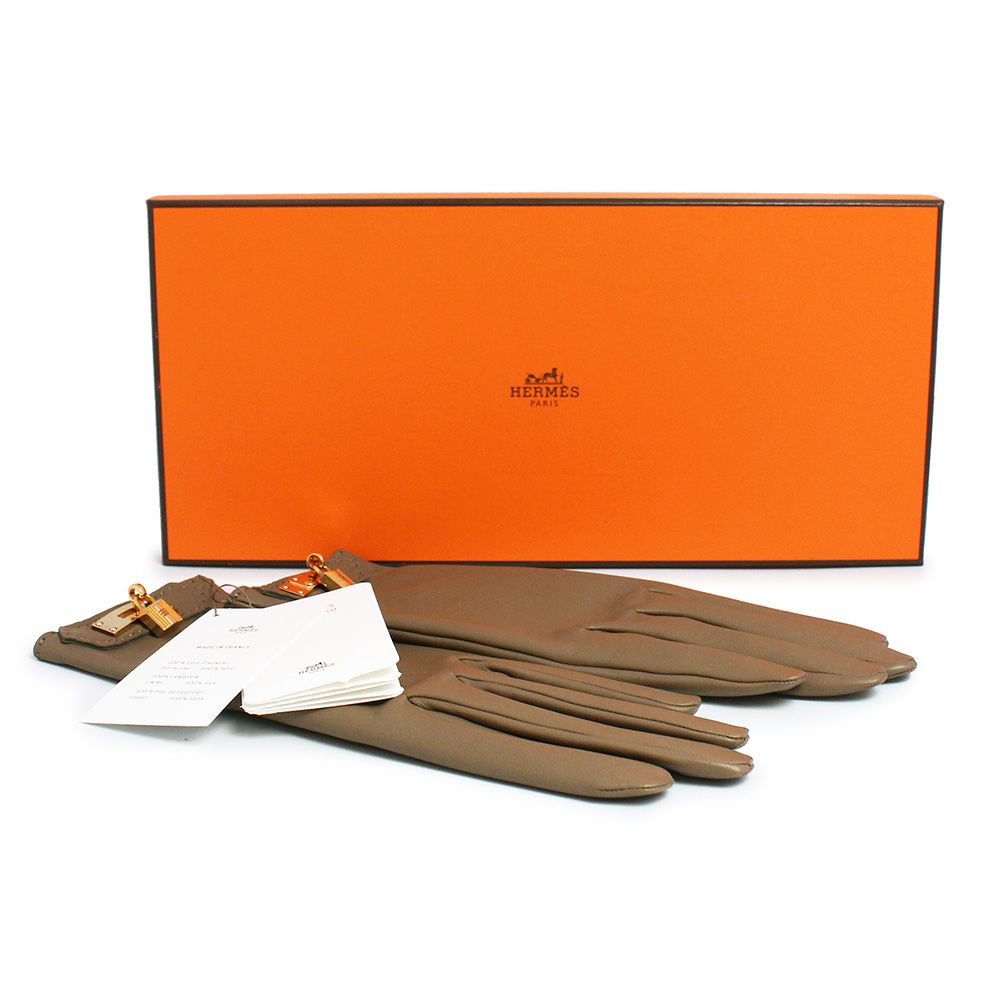エルメス ケリー ソヤ 手袋 6 1 2 グローブ ラムスキン レザー エトゥープ エトープ グレージュ ゴールド金具 HERMES GLOBALQUALITYIMPORTS_COM