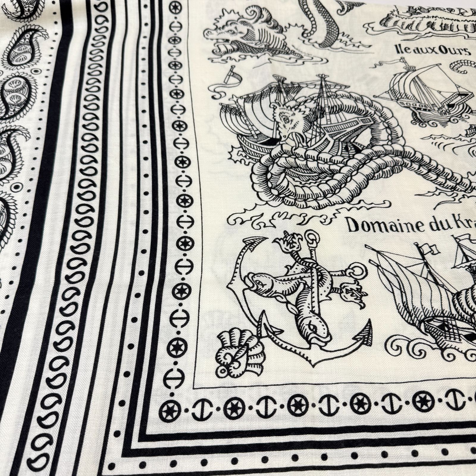 鑑定済み エルメス カレジェアン 140 船乗りのタトゥー バンダナ 白 黒 カシシル スカーフの検索結果