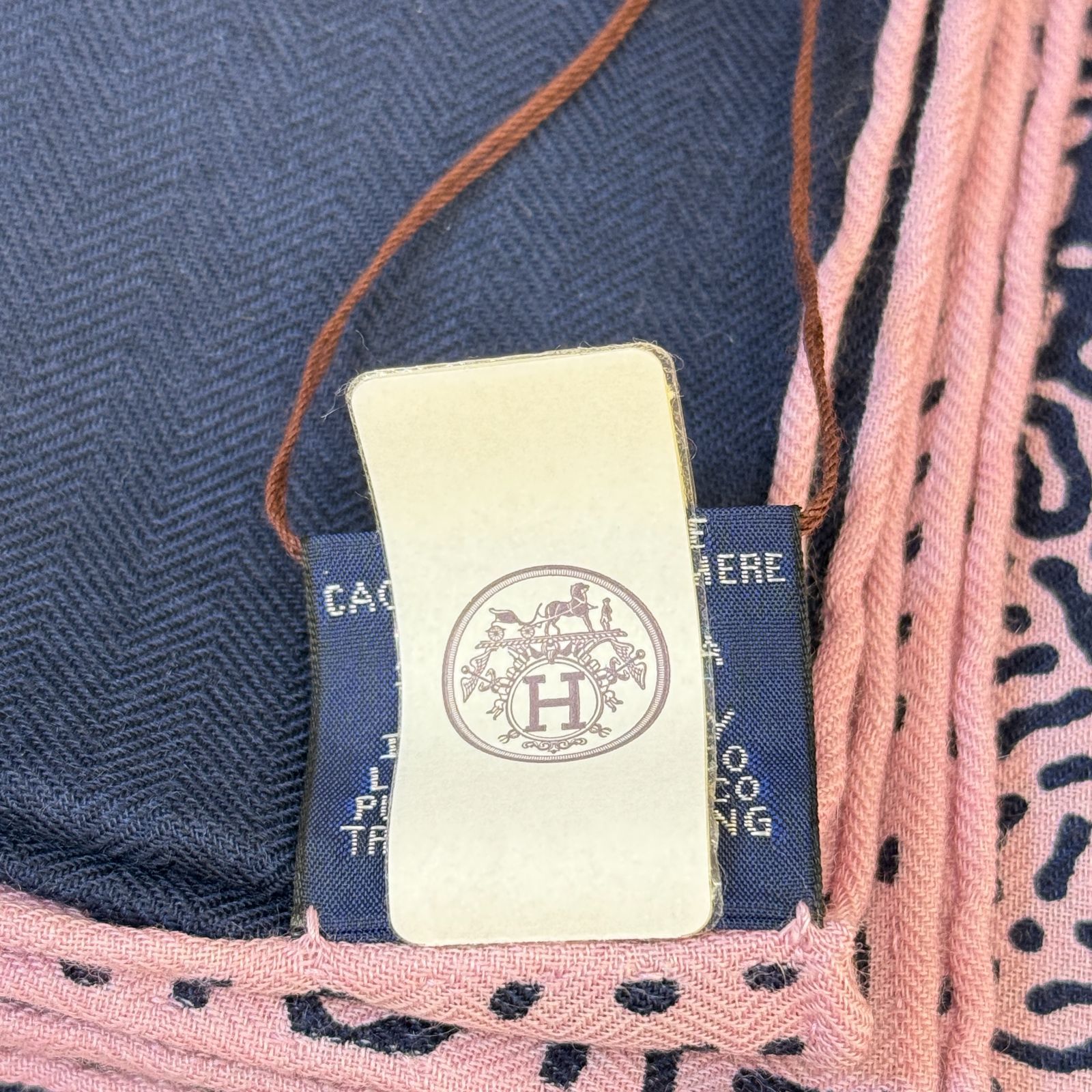 鑑定済み エルメス カレジェアン 140 クレール ドゥ リュンヌ 月光 ネイビー ピンク カシシル ストール ショール GLOBALQUALITYIMPORTS_COM