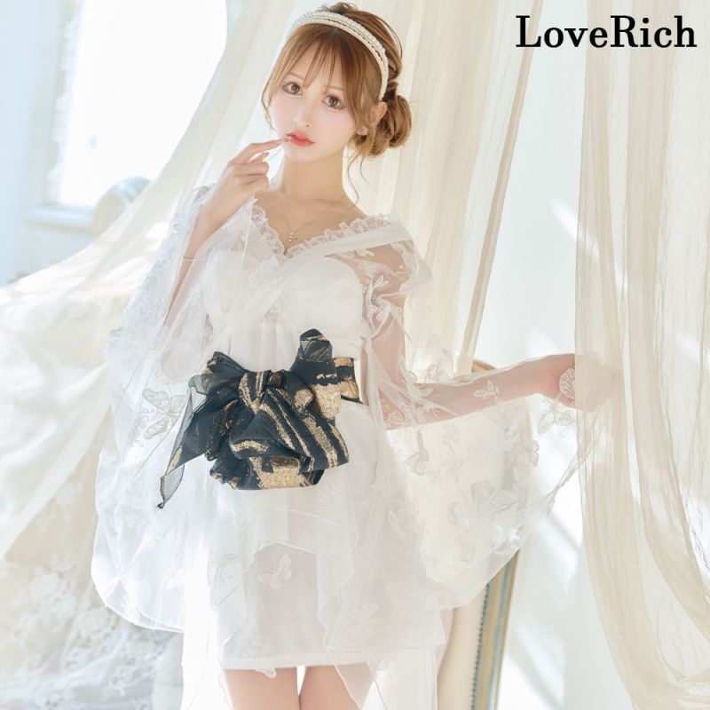 LoveRich ラブリッチ ライン 3 蝶々 刺繍 ロング ミニスカート オフショル 美胸 美脚 豪華 帯 花魁 着物 ドレス コスプレ イベント ハロウィン 1252の検索結果