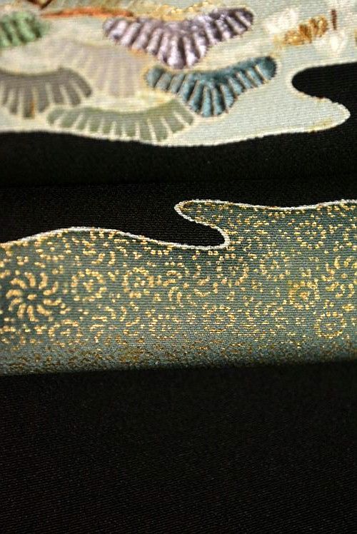 平和屋着物 創業460年 千總 黒留袖 駒刺繍 流水枝花文 金彩 正絹 AABA8795zg
