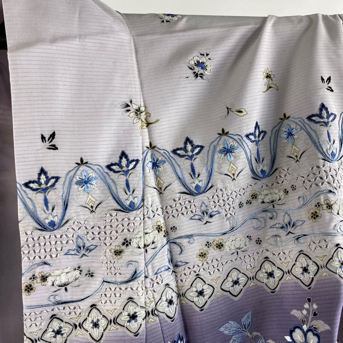 訪問着 身丈164.5cm 裄丈68.5cm L 袷 大島紬地 証紙 華文 花唐草 刺繍 金彩 薄紫 正絹の検索結果