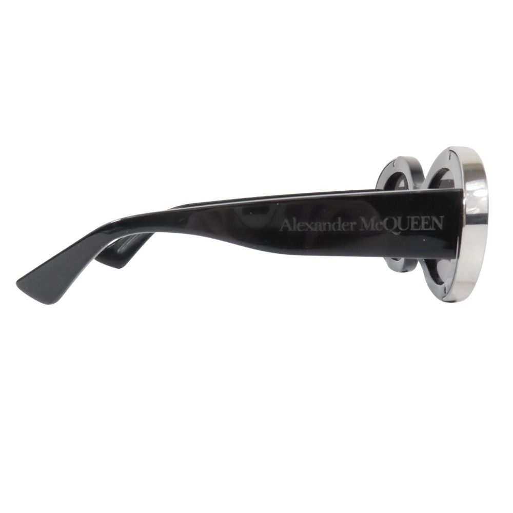 Alexander McQueen アレキサンダーマックイーン ラウンドフレーム サングラス ロゴテンプル AM0445S アイウェア 黒 シルバー メンズ レディース 古着 GLOBALQUALITYIMPORTS_COM