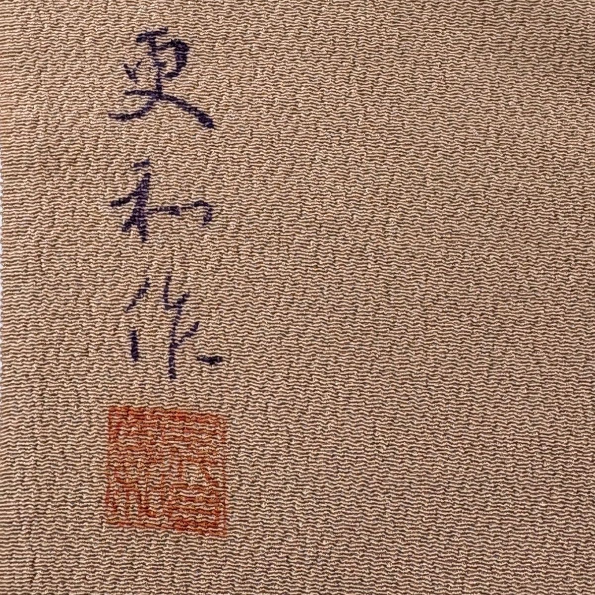 反物 秀品 小紋 落款 人物 草花 茶色 正絹 GLOBALQUALITYIMPORTS_COM
