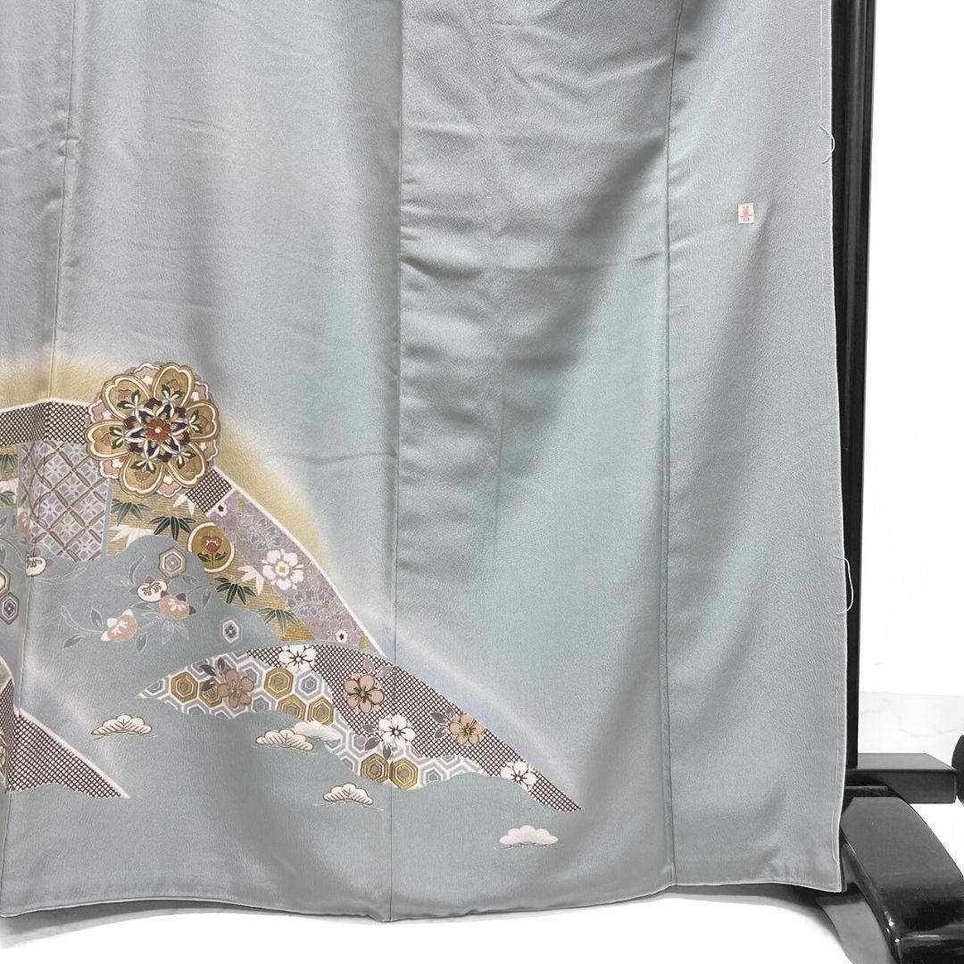 色留袖 一つ紋 丸に剣片喰 袷 レディース 正絹 灰 風景柄 茶屋辻 身丈155.5cm 裄丈67cm 式典 結婚式 Mサイズ相当