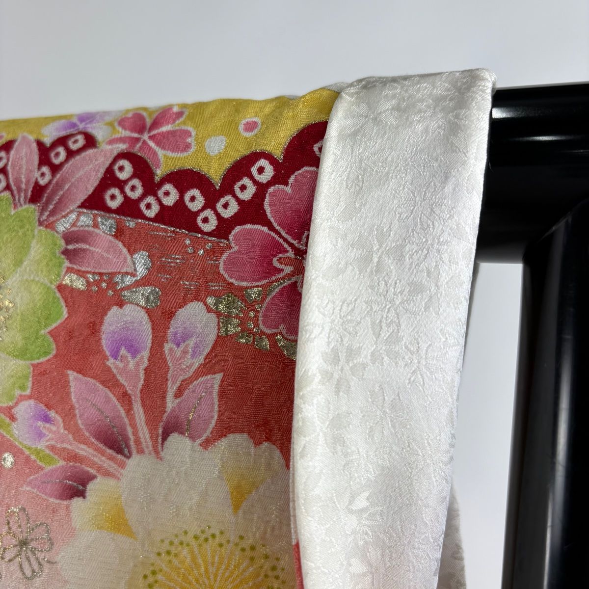 振袖 身丈165cm 裄丈68cm L 袷 貝桶 琴 金彩 ぼかし サーモンピンク 正絹 秀品