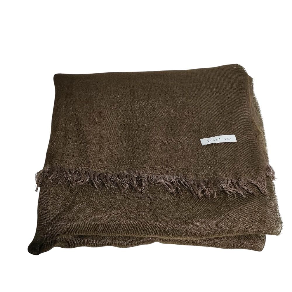 GATTI&C.-BIELLA ガッティアンドシービエラ ドゥーズィエムクラス取り扱い リネン カシミヤ フリンジストール マフラー カーキ レディース 古着 GLOBALQUALITYIMPORTS_COM