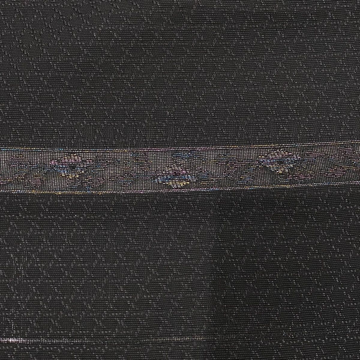 小紋 身丈157.5cm 裄丈64.5cm M 薄物 草花 地紋 箔 墨色 正絹 GLOBALQUALITYIMPORTS_COM