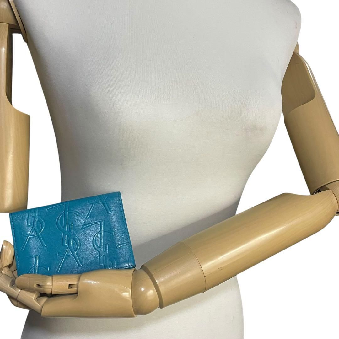 イヴサンローラン 定期入れ 名刺入れ カードケース 型押し レザー 青の検索結果