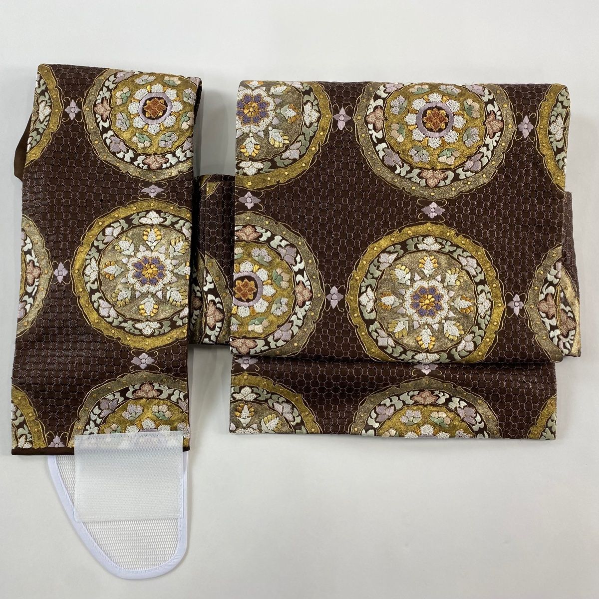 付け帯 作り帯 華文 刺繍 箔 焦茶色 正絹の検索結果