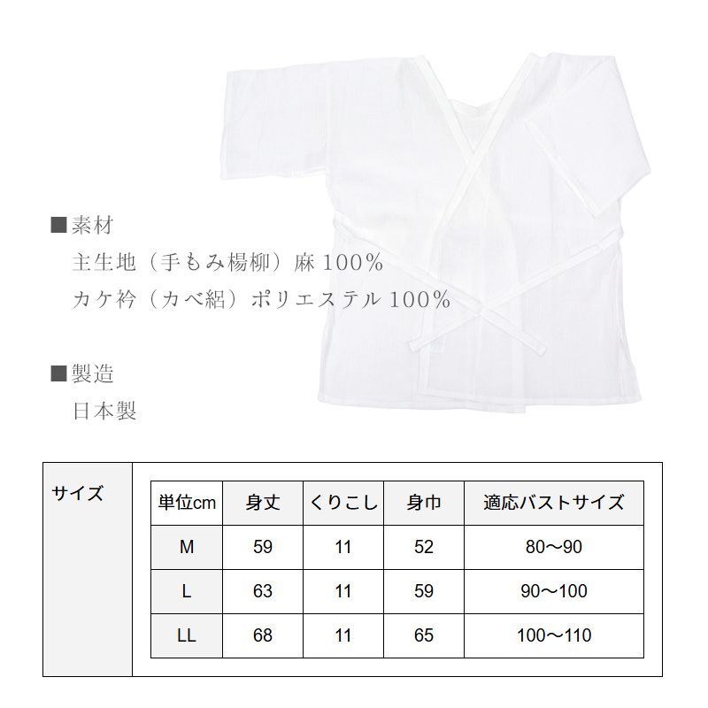 本麻手もみ楊柳 涼しい夏の肌襦袢 着物 和装肌着 レディース 白 腰紐付き 夏の肌じゅばん M 10012184 GLOBALQUALITYIMPORTS_COM