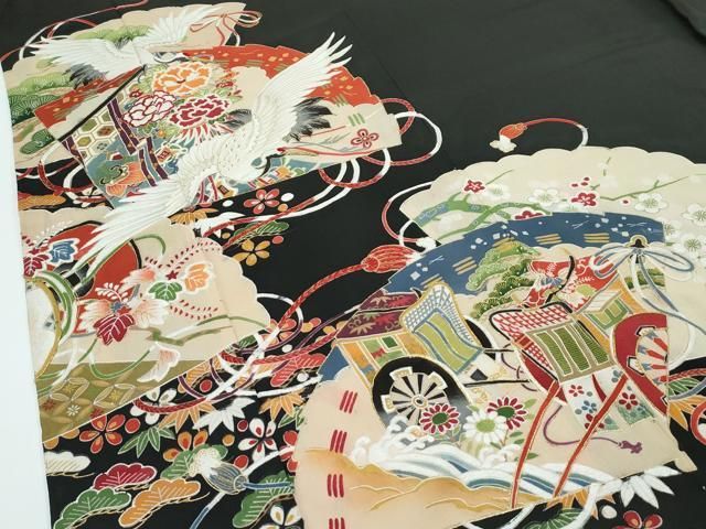 平和屋着物 上 アンティーク 大正ロマン 黒留袖 駒刺繍 檜扇飛鶴花文 金彩 CZAA3317s5の検索結果