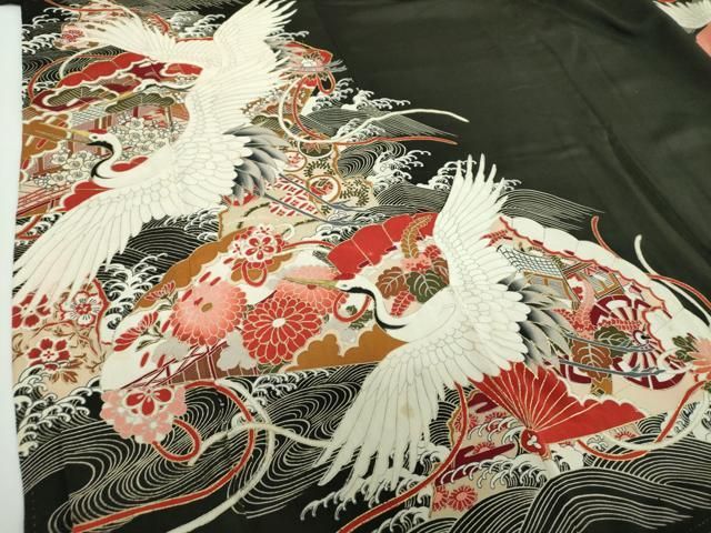 平和屋着物 アンティーク 大正ロマン 黒留袖 駒刺繍 立波御所車花文 金彩 正絹 DAAX4480psの検索結果