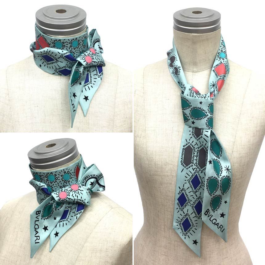 BVLGARI ブルガリ タイスカーフ シェリー セルペンティ ロゴ ライトブルー シルク き 服飾小物 aq5880の検索結果