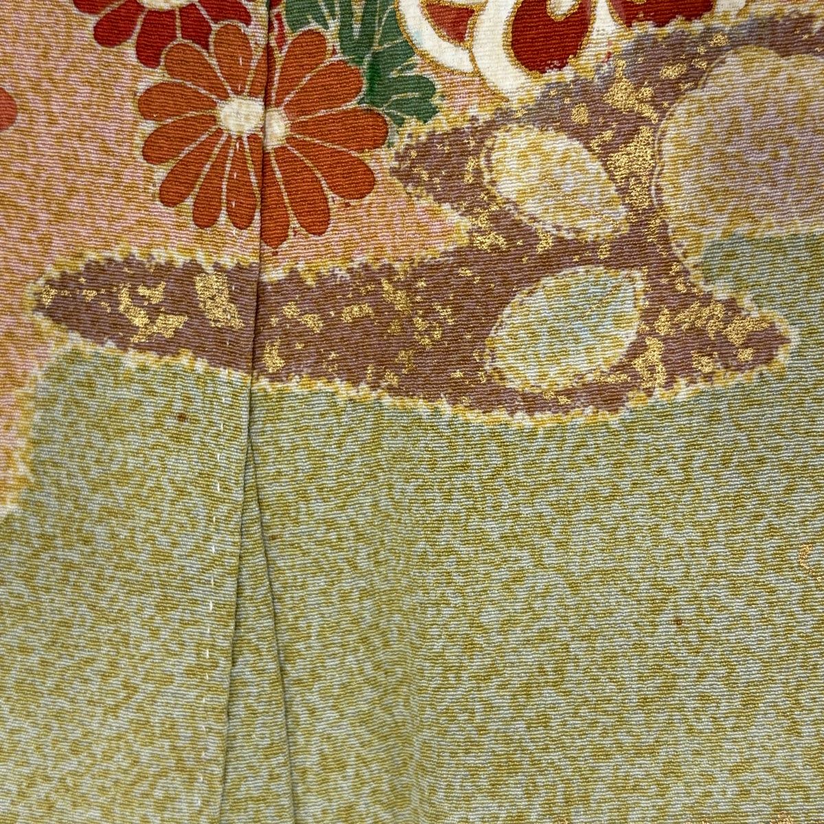 訪問着 身丈168.5cm 裄丈64cm M 袷 落款 菊 草花 金糸 金彩 薄緑 正絹の検索結果