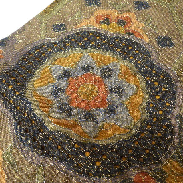 袋帯 正絹 フォーマル 六通 汕頭刺繍 スワトウ 中国刺繍 花模様 金通し 茶系色 多色 金 きもの北條 A1286-15 GLOBALQUALITYIMPORTS_COM