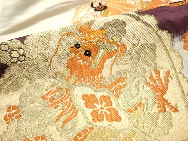 平和屋着物 アンティーク 大正ロマン 丸帯 龍唐草文 金糸 正絹 BAAV5355hv