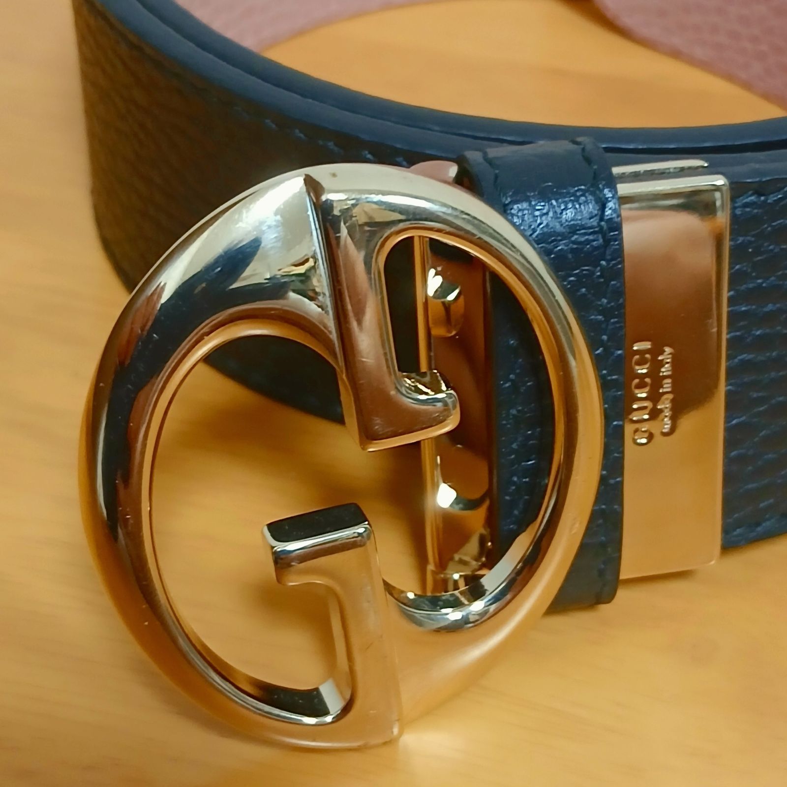 グッチ GGロゴバックル リバーシブル レザーベルト ブラック×ピンク金の検索結果