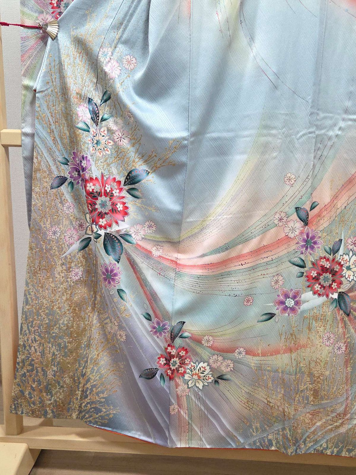D 着物くつろぎ 振袖 襦袢セット かわいい花模様 金彩 ラメ キラキラ 水色 袷 正絹 成人式 着物の検索結果