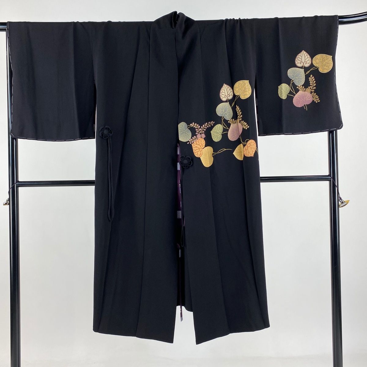道中着 身丈121.5cm 裄丈70cm L 和装コート 葵 金彩 縮緬 黒 正絹の検索結果