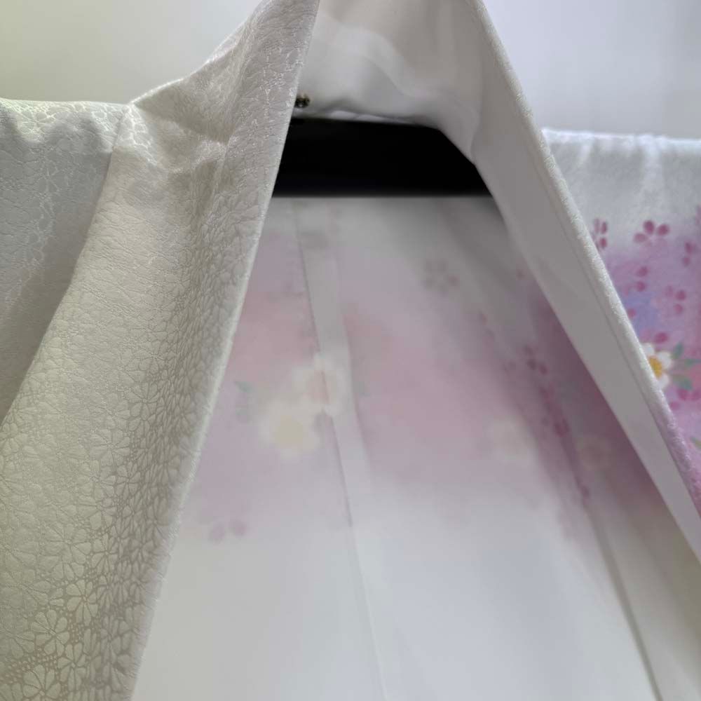 二尺袖 単品 卒業式着物 白 ピンク 裄67cm Lサイズ 袴用着物 化繊 4678の検索結果