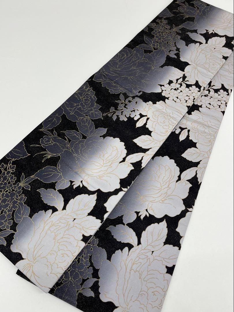 全通 袋帯 バラ モダン モノトーン 銀通し 金彩 正絹の検索結果