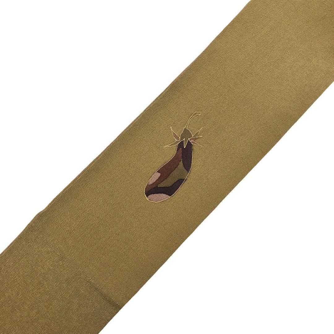 名古屋帯 野菜柄 茄子 豆 縮緬 国防色 長尺 O-5543の検索結果