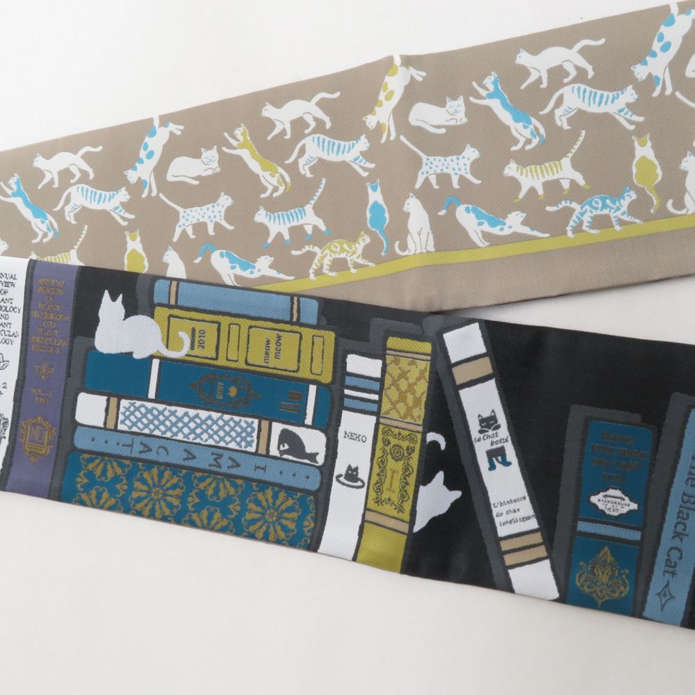 半幅帯 リバーシブル WA KKA NICO わっか ポリエステル 猫の古本屋 黒x青x茶色 ワッカ 半巾帯 長さ420cm GLOBALQUALITYIMPORTS_COM